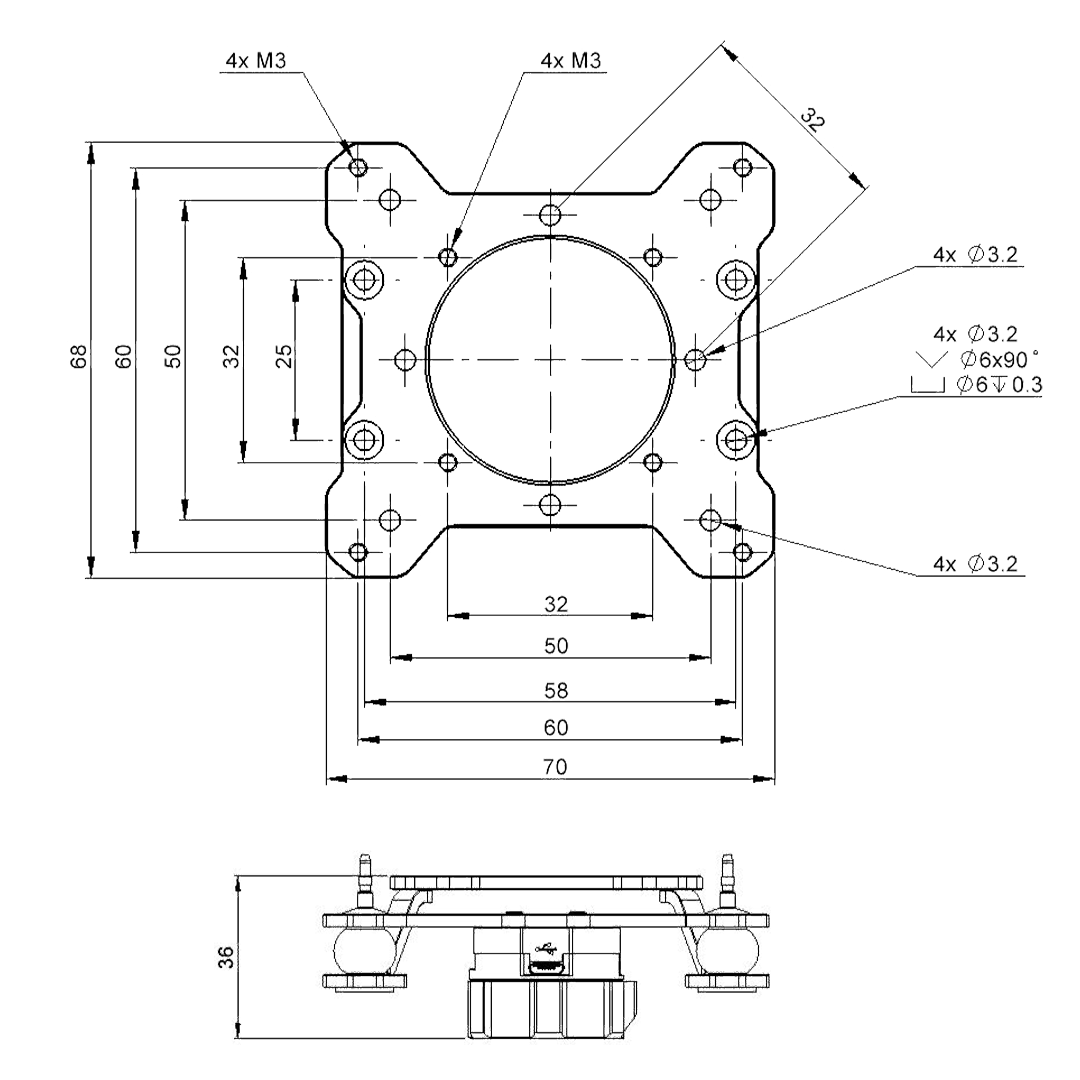 Using 20mm square M2 pattern to mountthe VIO quick release onto the VIO Damping plate