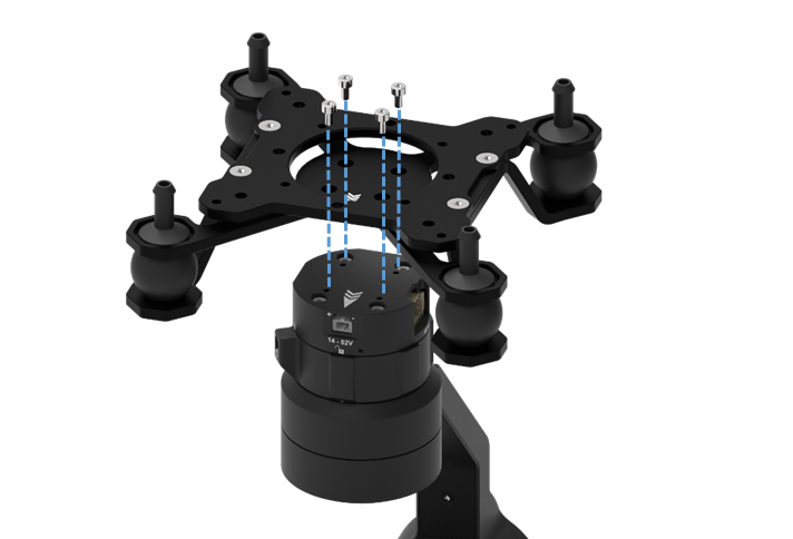 Connect the Vio to the standard damping plate as Section 1. Then Using 4 x M3 to mountthe VIO quick release onto the VIO damping plate