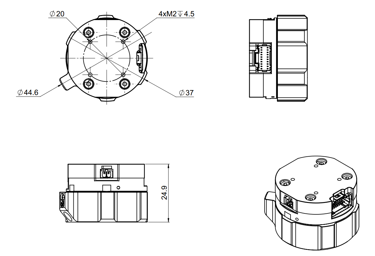 * Using 4xM2.5 to mount the top part onto the frame or damping isolator.