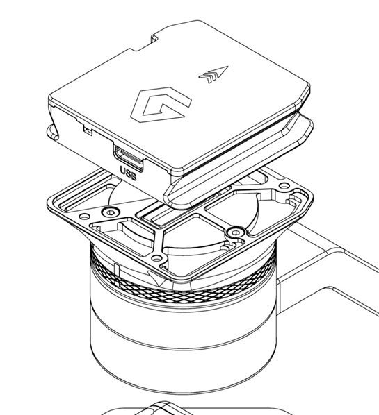 <figure><img src="https://3309772875-files.gitbook.io/~/files/v0/b/gitbook-x-prod.appspot.com/o/spaces%2FnikHUDUd2JXqkOsnOi7l%2Fuploads%2F4qmNcFR6qltAikpW4MID%2Fimage.png?alt=media&#x26;token=a91d286e-e374-4c28-8d3c-e860bd087df8" alt=""><figcaption><p>Tighten 3x M2x5 screws to secure the adapter to the top of the Pan motor</p></figcaption></figure>