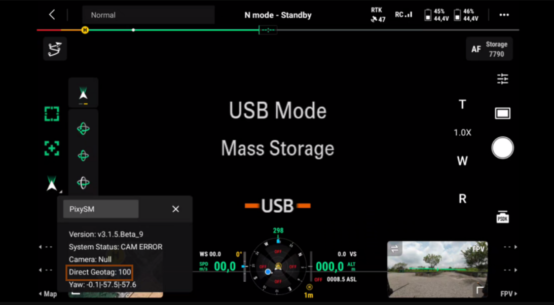 * Enable/disable Direct Geotag **only when the drone is on the ground**, and the gimbal motors have been **properly tuned** (no vibration, no motor overload).