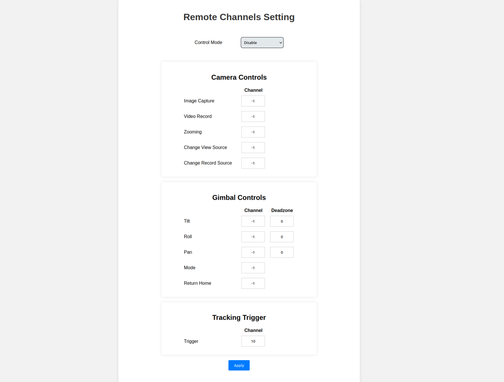 2.1 Disable control by SBUS/PPM. Only use MAVlink to control the Payload