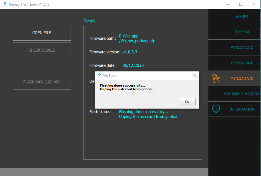 Using GremsyFlashTools
