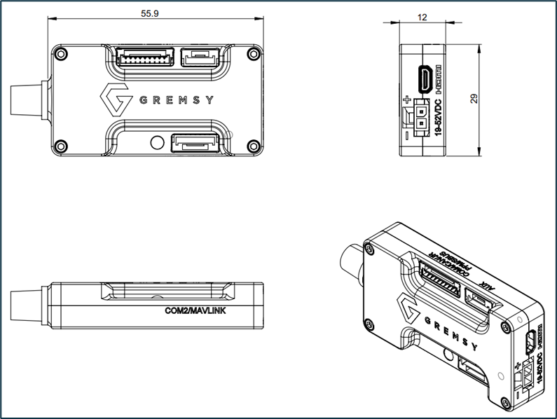 The connection hub is not IP-rated, so please ensure it is mounted under the drone body or in a location protected from water and dust